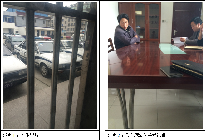 我司調(diào)查員攜民警抵達(dá)后,首先知會(huì)了海安當(dāng)?shù)匦叹块T,當(dāng)?shù)匚闪四贤ㄐ檀蟮奶锞倥c我司調(diào)查人員共同處理該案,談話地點(diǎn)選在了海安的城北中心派出所。由派出所打電話給駕駛員過來談話,駕駛員聽到警方傳喚后,略顯慌張,比約定的12點(diǎn)推遲了半個(gè)多小時(shí)才到達(dá)。