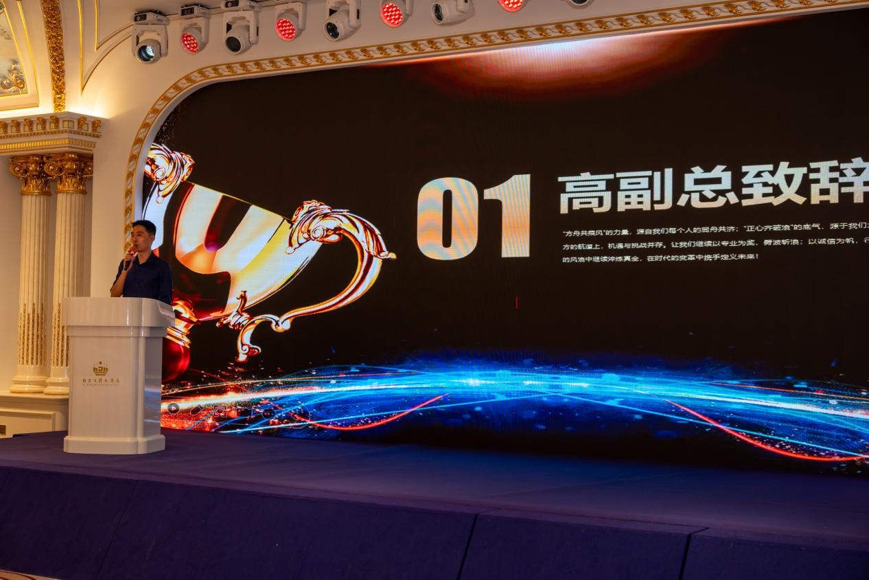 7月18日晚6時(shí)08分,主題年會(huì)晚宴在激昂的氛圍中盛大啟幕。晚宴伊始,公司副總經(jīng)理高總登臺(tái)致辭,深情回顧了公司在過去一年風(fēng)浪中錨定航向、合力前行的征程,并深刻闡述了“正心”作為方舟破浪核心動(dòng)力的重要意義。
